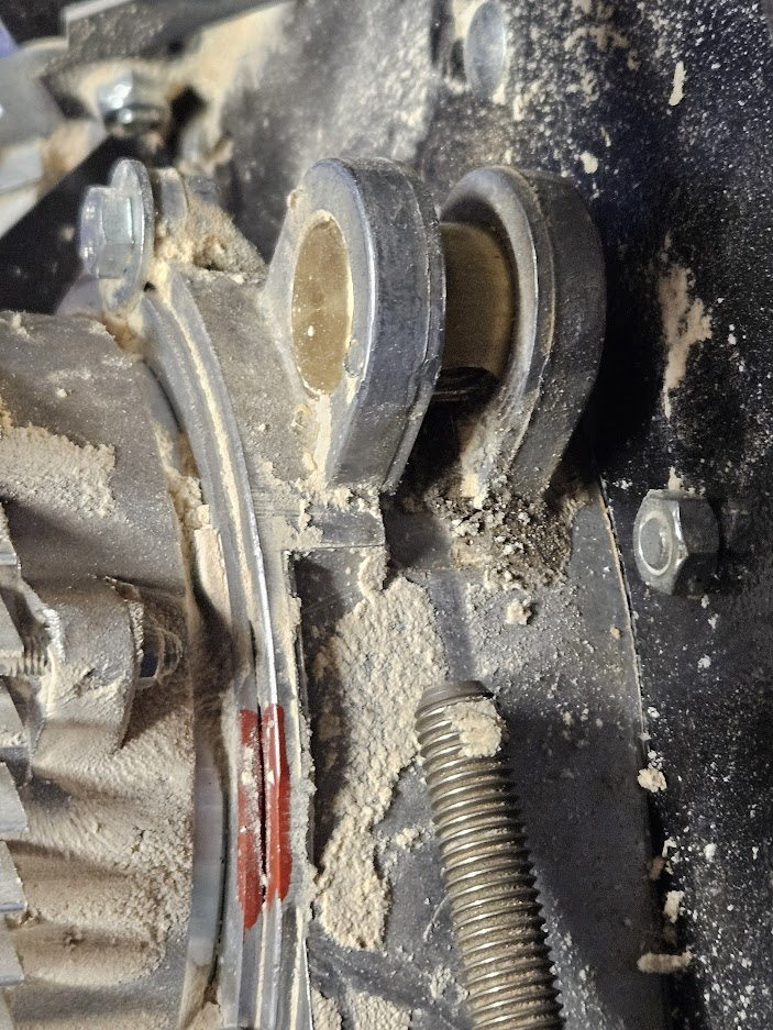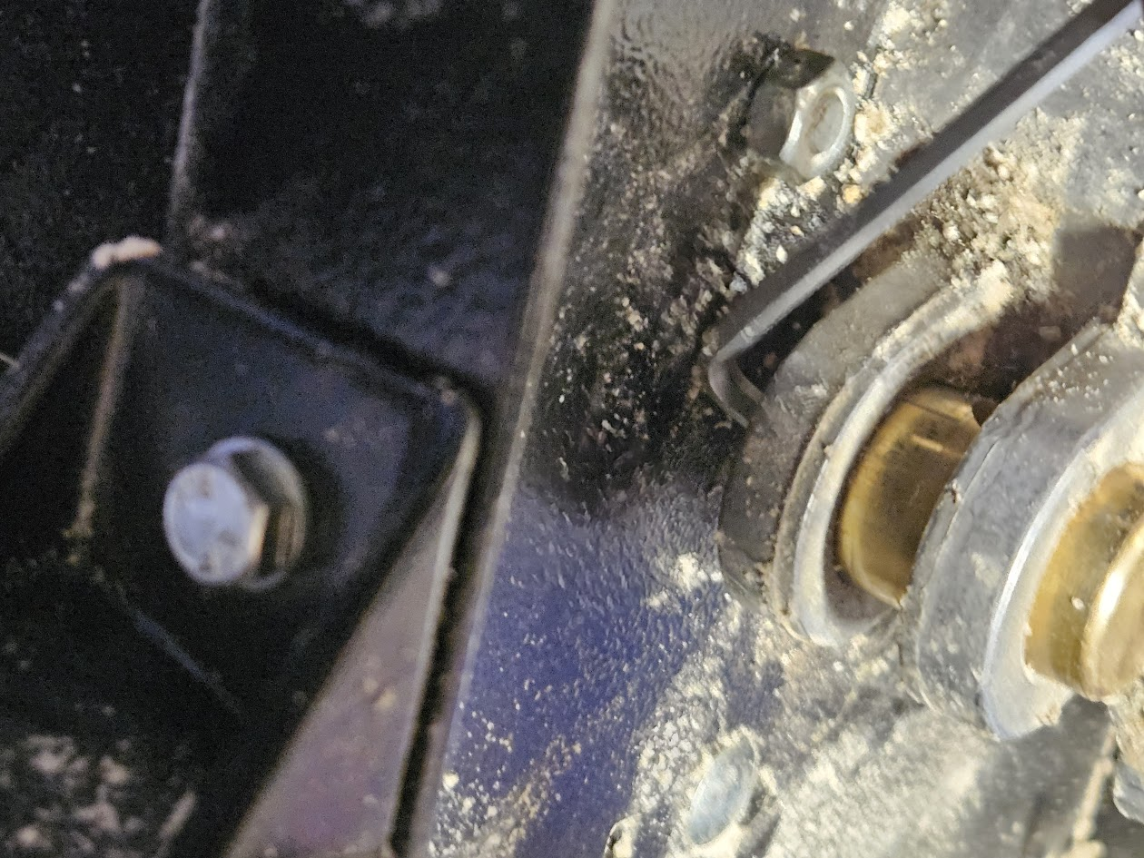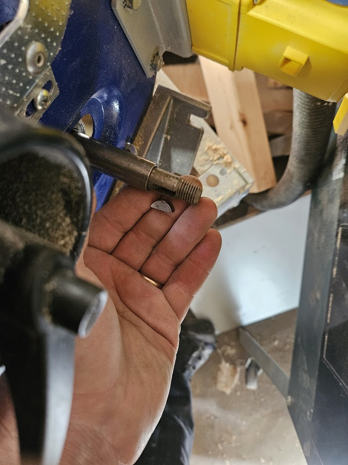 An important step now will be to rinse and lubricate the suspention for the saw so that the load on the new draw bolt will be less. Also, as soon as the height adjustment starts to become difficult, it should be rinsed and lubricated to avoid the draw bolt to be damaged again. I sprayed in some wd40 between the flange and the chip case and dried off whatever came out, I am still not sure if this is the right stuff to use, but the mechanism is moving a lot easier than what it used to do.